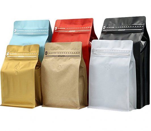 Fermuarlı kilitli ve gazdan arındırma valfli düz tabanlı kahve torbası. Taze kavrulmuş ve taze çekilmiş kahveyi saklamak için kullanılır. Gazdan arındırma valfleri tek yönlü bir prensibe göre çalışır, yani karbondioksiti serbest bırakır ve oksijenin akmasına izin vermez. Fermuarlı kilit, paketin yeniden kullanılabilir şekilde açılıp kapanmasını sağlar.